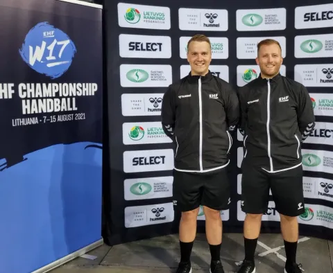 Dómaraparið Bjarki Bóasson og Gunnar Óli Gústafsson dæmdu á EM í Litháen á dögunum og stóðu sig vel. Partur af veru þeirra þar var að klára EHF dómarapróf til að fá fullgildingu sem EHF dómarar. Frammistaða þeirrra á mótinu veitti þeim EHF réttindi til dómgæslu í öllum mótum á vegum EHF.